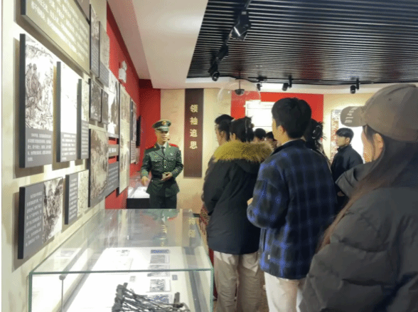 在庄严肃穆的纪念馆内,武警官兵担任现场讲解员,生动讲述了张思德同志平凡而伟大的一生。作为抗战时期涌现的英雄模范,张思德同志“全心全意为人民服务”的崇高精神,正是伟大抗战精神在和平年代的延续与传承。官兵们还结合部队建设实际,分享了新时代军人如何传承红色基因、践行使命担当,使师生们在追寻先烈足迹中感悟信仰力量。