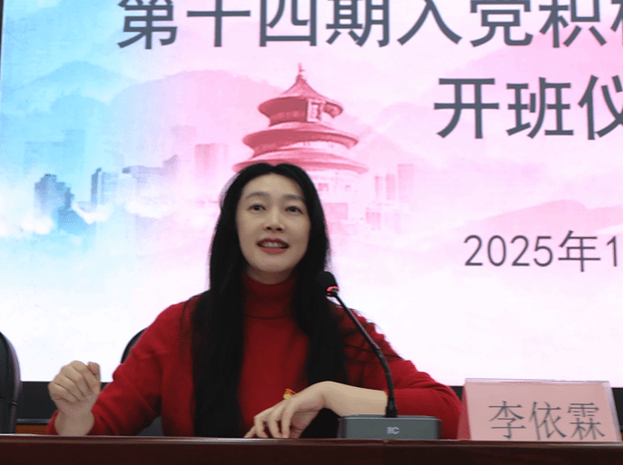 李依霖副书记作开班动员讲话,她强调了本期培训班的重要意义,希望全体学员珍惜学习机会,端正学习态度,严格遵守培训纪律,通过系统学习进一步深化对党的认识,筑牢思想根基,并在今后的专业学习与实践中发挥模范带头作用。